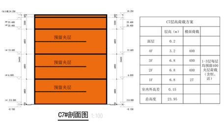 【楼板承重】首层2吨/㎡, 标准层0.4-1吨/㎡,顶层0.3-0.4吨/㎡