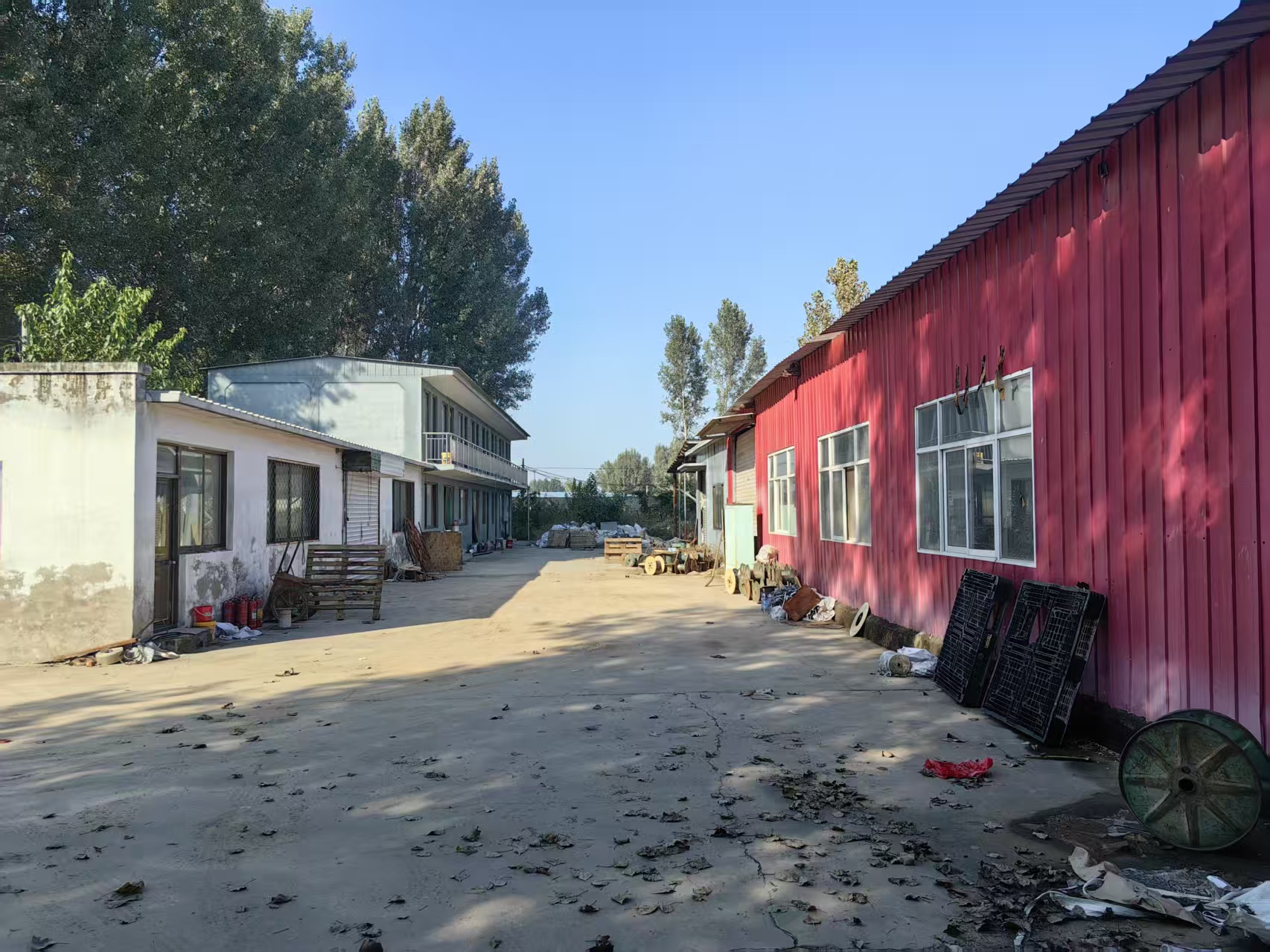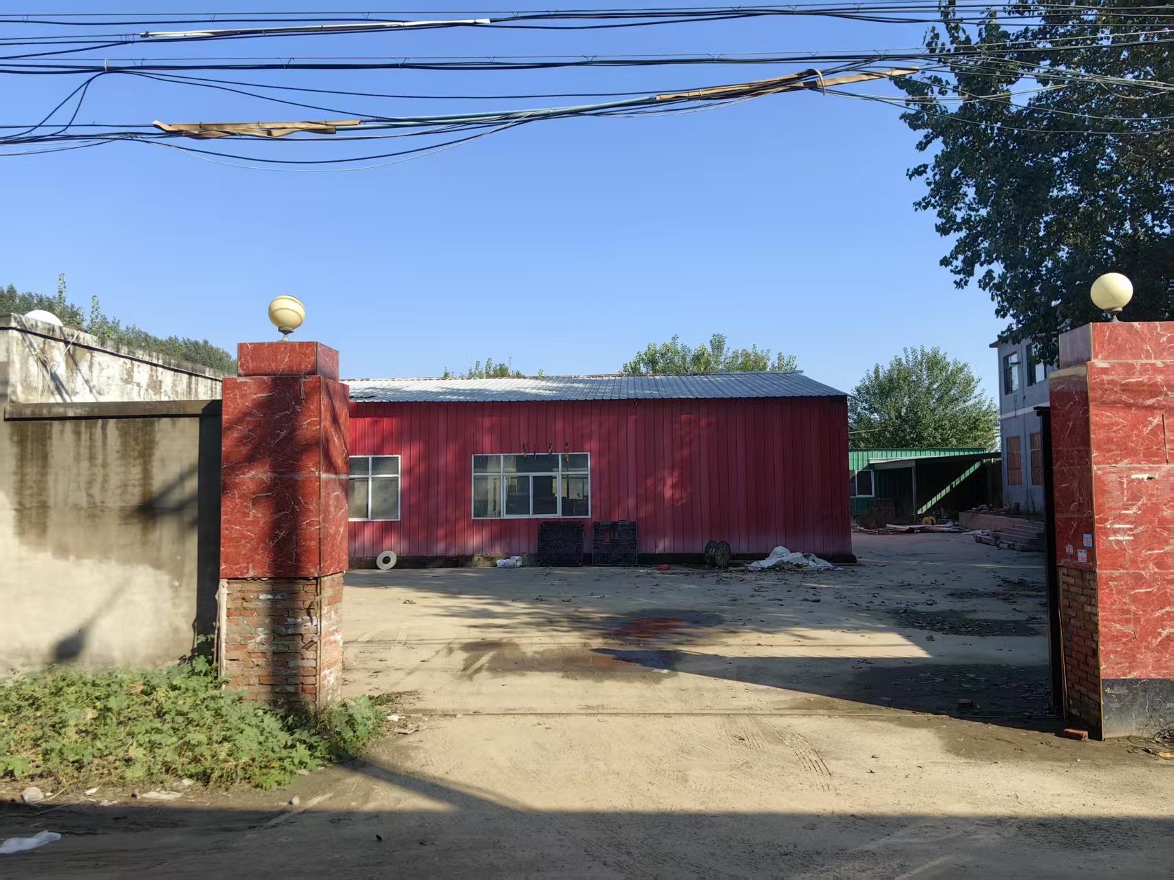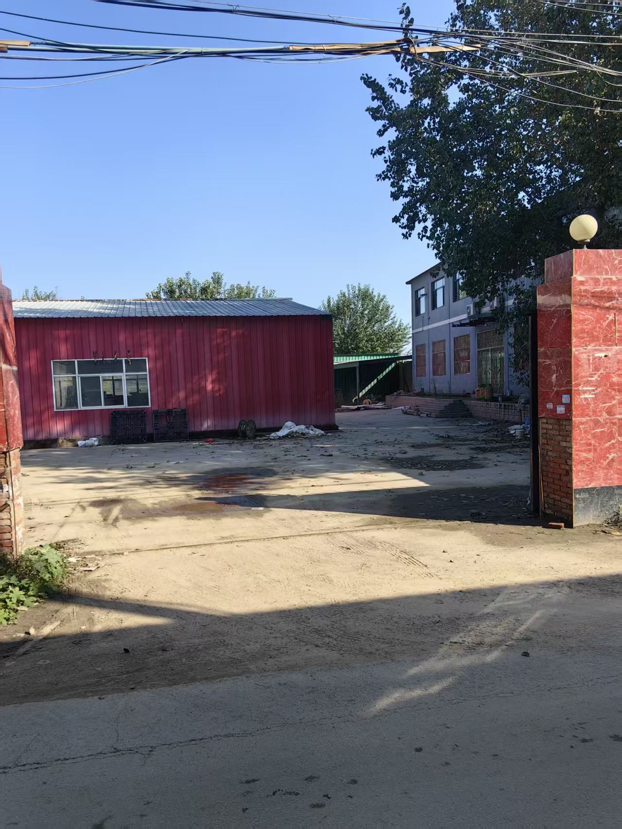 场院详情:独门独院占地面积5000平米,场院硬化地面干净整洁,建筑面积约2000平米,二层独栋办公楼800平米,移动车间500平米,敞篷齐全,场院水电配套办公住宿等一应俱全,配有独立变压器。