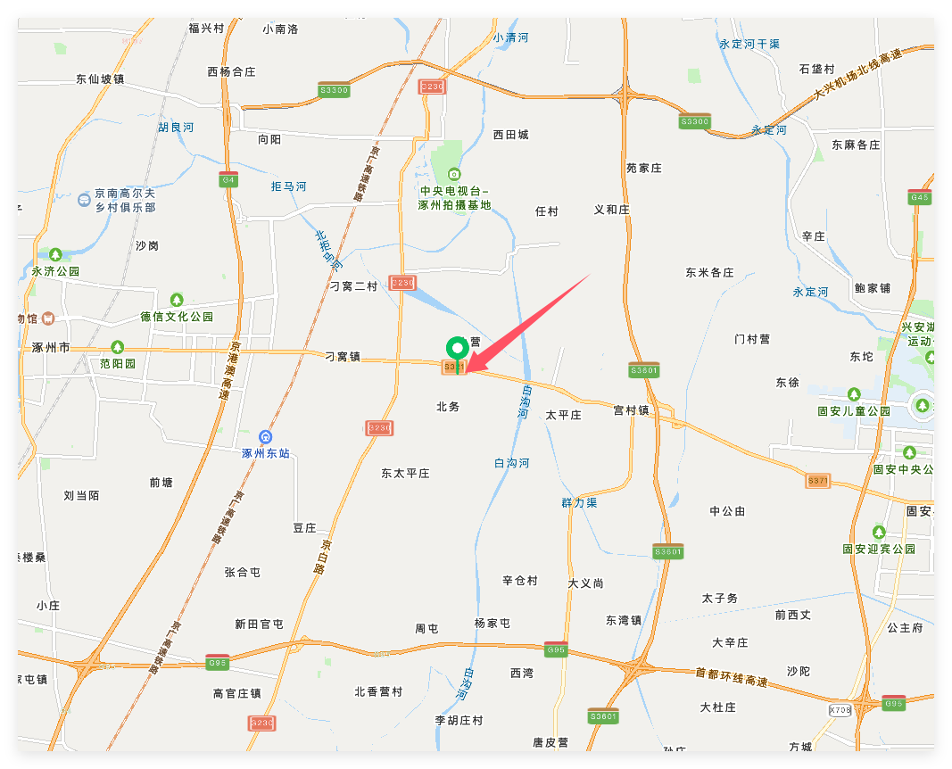 场院位于:河北省保定市涿州市刁窝镇万全庄,厂院临近321省道、京白路、京港澳高速地理位置优越,交通便利。